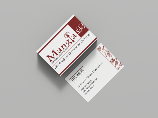 Rack cards and business cards that showcase the Mangia brand while also providing customers with important information about Mangia and it's services.