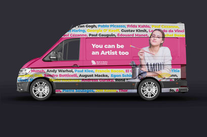 Designing bus wraps for "Back to Basics Art Academy" involves utilizing large-scale canvases to visually communicate the essence of the academy's mission and values. Utilizing a CMYK color scheme that reflects the basics of printmaking will make the bus wraps stand out on city streets, capturing the attention of passersby and sparking curiosity about the academy's offerings. This dynamic mobile advertisement not only promotes the academy but also reinforces its commitment to fostering artistic talent and celebrating the timeless fundamentals of artistry.